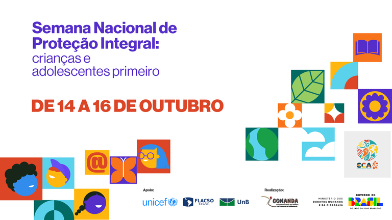 Promovida pelo Ministério dos Direitos Humanos e da Cidadania (MDHC), por meio da Secretaria Nacional dos Direitos da Criança e do Adolescente (SNDCA), em parceria com o Conselho Nacional dos Direitos da Criança e do Adolescente (Conanda), a Semana Nacional retoma o Dia Nacional das Crianças (12/10).