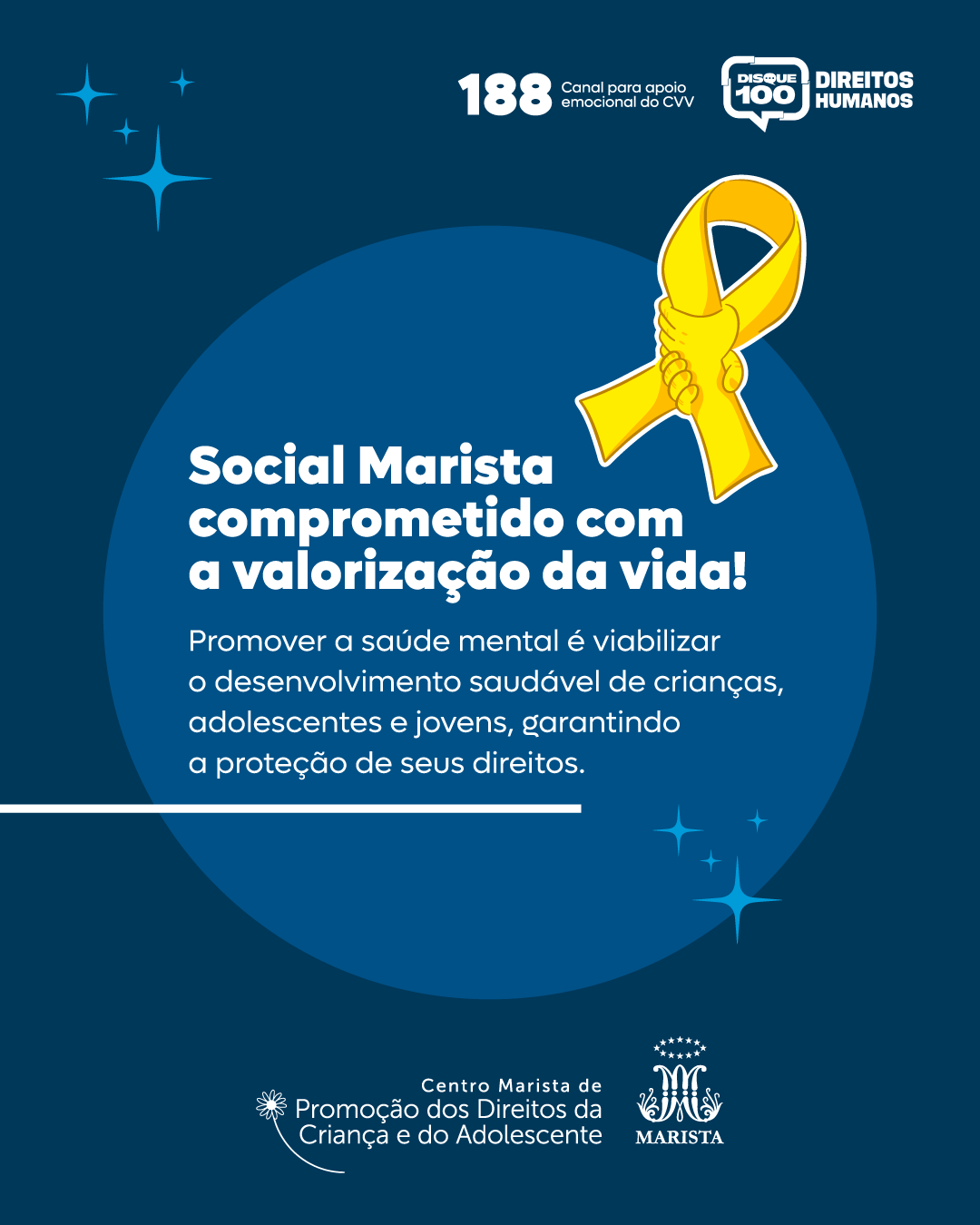 No mês de setembro, em sintonia com a campanha Setembro Amarelo, que faz alusão à prevenção do suicídio, o Social Marista fomentou o diálogo sobre a saúde mental através da Campanha de Valorização da Vida, desmistificando a temática e reconhecendo os espaços de escuta e acolhida como agentes de promoção de cuidado.